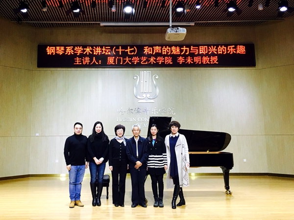11月15日下午,厦门大学艺术学院李未明教授受邀做客哈尔滨音乐学院钢琴系第十七期学术讲坛,在第一演奏厅(主楼A219室)讲授“和声的魅力与即兴的乐趣”,钢琴系全体师生参加。